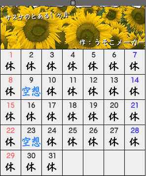 ここの記事でもチョクチョクネタをいただいている『うそこメーカー(ttp://maker.usoko.net/)』のシリーズに、カレンダーメーカーが新登場らしいですね。
